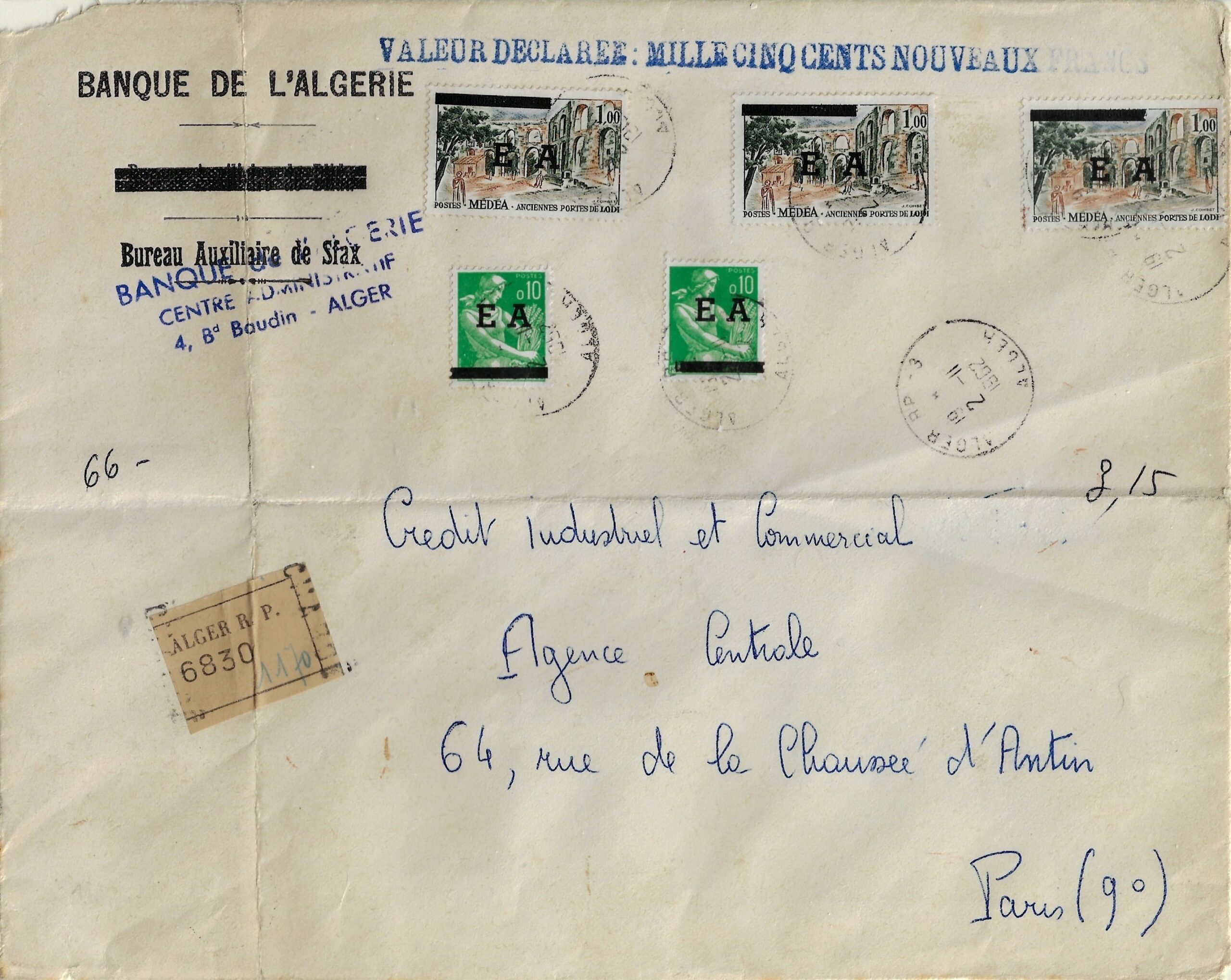 Officiellement, les timbres surchargés E.A. n’eurent plus cours après le 23 janvier 1963, soit après sept mois d’utilisation. Néanmoins, du courrier affranchi avec des timbres Français surchargés EA a continué à circuler en France et en Algerie, au-delà de la date du 23-01-1963.